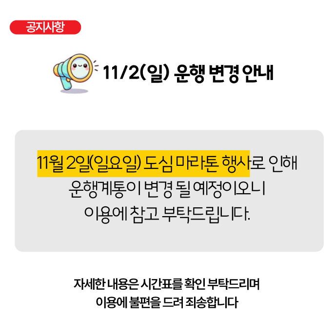 📢11/2(일) 운행변경 안내