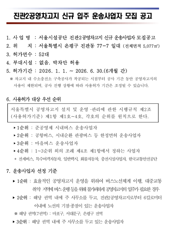 📢진관2공영차고지 신규 입주 운송사업자 모집 공고
