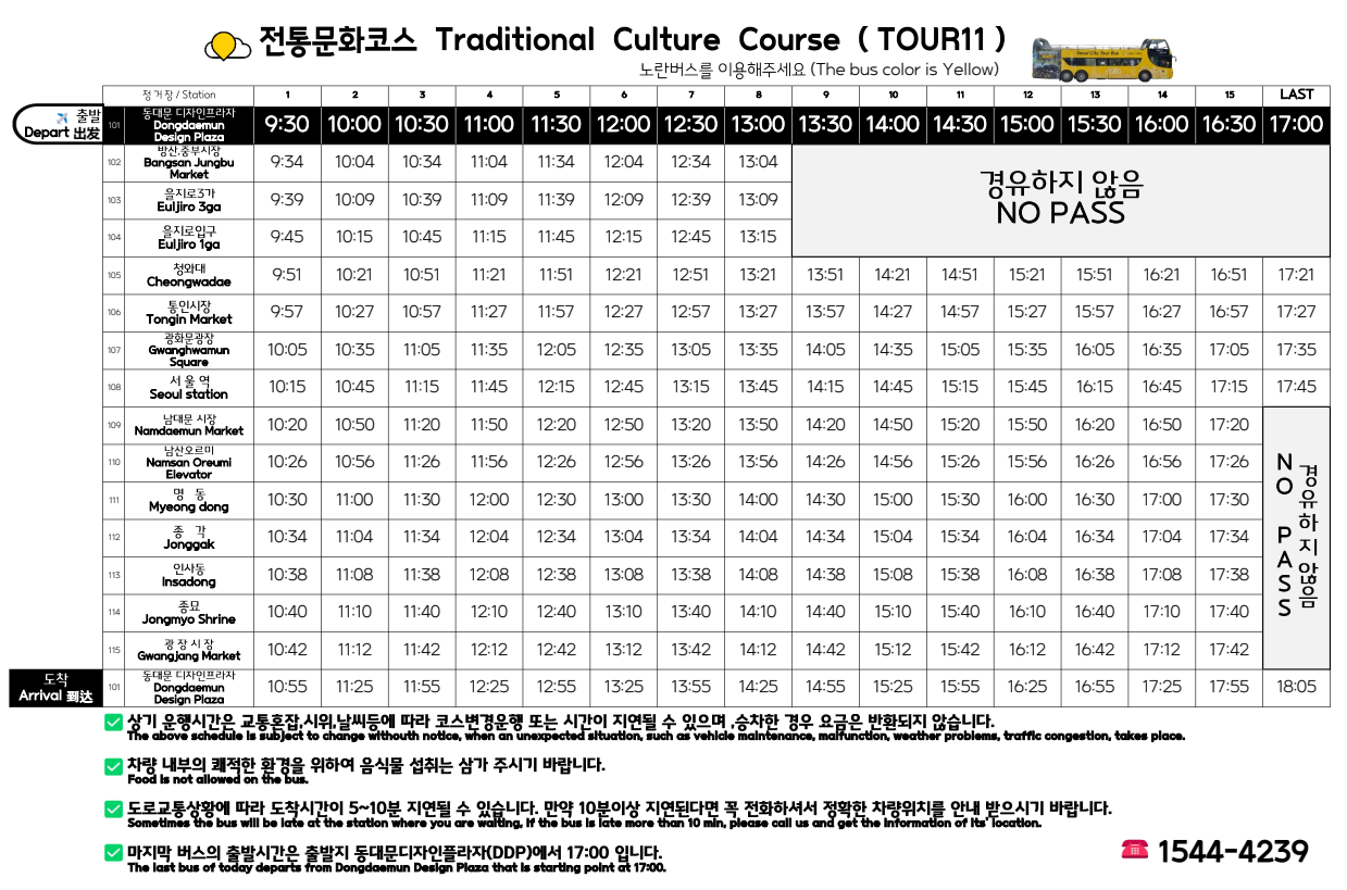 설날 운행 시간표 2/14(토) ~ 2/18(수)